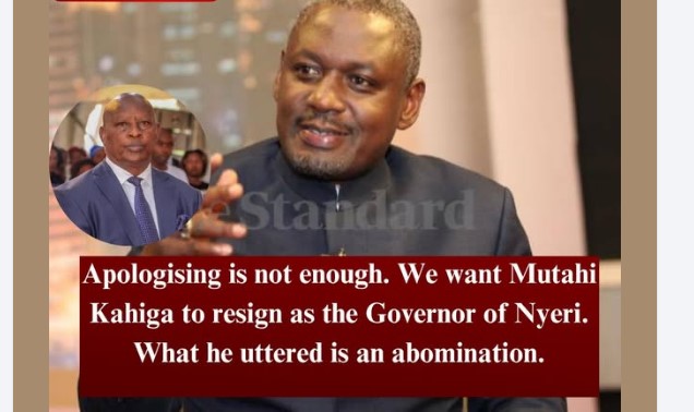 “Apologizing is not enough. We want Mutahi Kahiga to resign as the Governor of Nyeri. What he uttered is an abomination,” Otiende Amollo declared firmly.