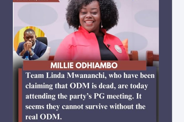 Team Linda Mwananchi, who have been claiming that ODM is dead, are today attending the party’s PG meeting. It seems they cannot survive without the real ODM.~Millie Odhiambo