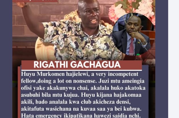 Gachagua demolishes Murkomen-Huyu Murkomen hajielewi, a very incompetent fellow,doing a lot on nonsense.