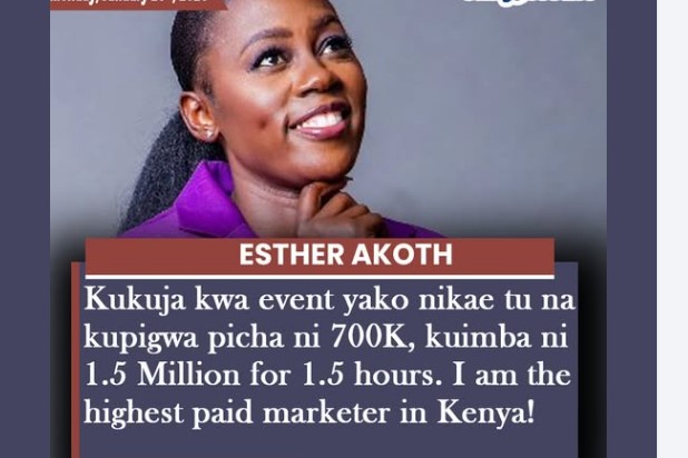 Kenyan entertainer and entrepreneur Akothee has sparked online debate after publicly revealing her event rate card, boldly declaring herself the highest-paid marketer in the country. According to Akothee, appearing at an event for photo sessions and brand presence alone costs KSh 700,000, while a full live performance goes for KSh 1.5 million for one and […]