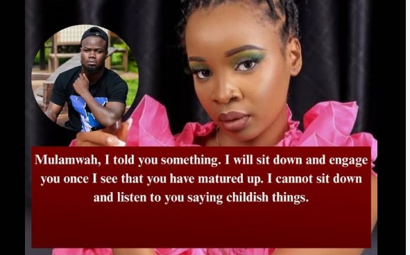 ”Mulamwah, I told you something. I will sit down and engage you once I see that you have matured up. I cannot sit down and listen to you saying childish things.” Carol Sonnie asks Mulamwah to mature up.