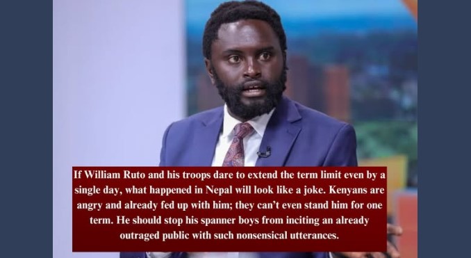 “If Ruto dare’s to extend Term limit even by a single day, what happened in Nepal will look like a joke.Senator Methu warns