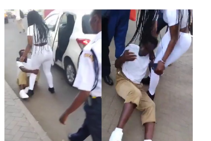 Man grabs his girlfriend’s leg and refuses to let her go after she dumped him For a Rich Prado Mubabas in Nairobi CBD