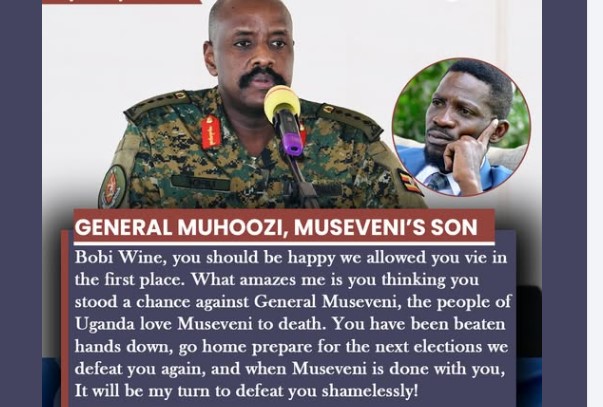 General Muhoozi tells Bobi Wine-“Bobi Wine, you should be happy we allowed you vie in the first place. What amazes me is you thinking you stood a chance against General Museveni”