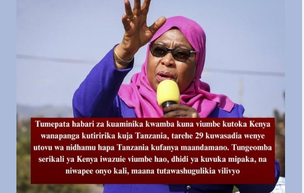 Samia Suluhu Warns Kenyans Against Crossing Into Tanzania to Join Planned Protests ‘Tungeomba serikali ya Kenya iwazuie viumbe hao’