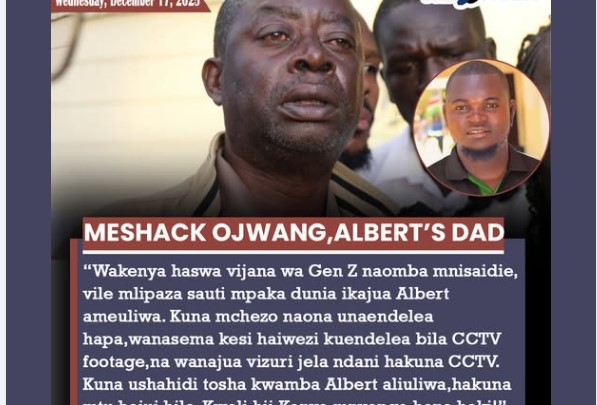 “Wakenya haswa vijana wa Gen Z naomba mnisaidie, vile mlipaza sauti mpaka dunia ikajua Albert ameuliwa. Kuna mchezo naona unaendelea hapa,wanasema kesi haiwezi kuendelea bila CCTV footage,na wanajua vizuri jela ndani hakuna CCTV. ”-Albert Ojwang’s father