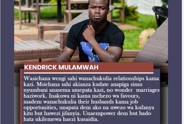 Comedian and content creator Mulamwah has sparked widespread discussion after sharing his candid views on modern relationships and marriage. Speaking during a public forum, Mulamwah argued that many young women today approach romantic relationships as a form of employment rather than a partnership built on mutual support and responsibility. He claimed that when some women […]