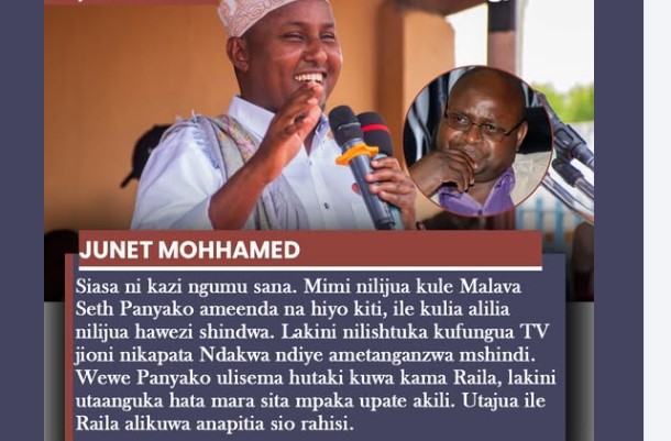 Junet Mohhamed laughs at Seth Panyako-“Siasa ni kazi ngumu sana. Mimi nilijua kule Malava Seth Panyako ameenda na hiyo kiti, ile kulia alilia nilijua hawezi shindwa. Lakini nilishtuka kufungua TV jioni nikapata Ndakwa ndiye ametanganzwa mshindi”