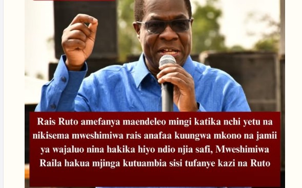 “Rais Ruto amefanya maendeleo mingi katika nchi yetu na nikisema mweshimiwa rais anafaa kuungwa mkono na jamii ya wajaluo nina hakika hiyo ndio njia safi, Mweshimiwa Raila hakua mjinga kutuambia sisi tufanye kazi na Ruto”-CS Opiyo