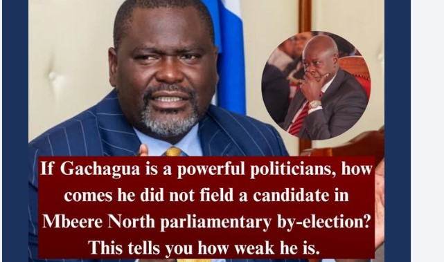 Interior Cabinet Secretary Geoffrey Ruku has reignited political tension in Mt Kenya after openly questioning the strength and influence of former Deputy President Rigathi Gachagua. Speaking during a public function, CS Ruku dismissed claims that Gachagua remains a powerful figure in the region, pointing to the ongoing Mbeere North parliamentary by-election as proof that his […]