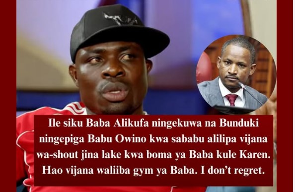Former armed Robber Gaucho says,”Ile siku Baba Alikufa ningekuwa na Bunduki ningepiga Babu Owino kwa sababu alilipa vijana wa-shout jina lake kwa boma ya Baba kule Karen.