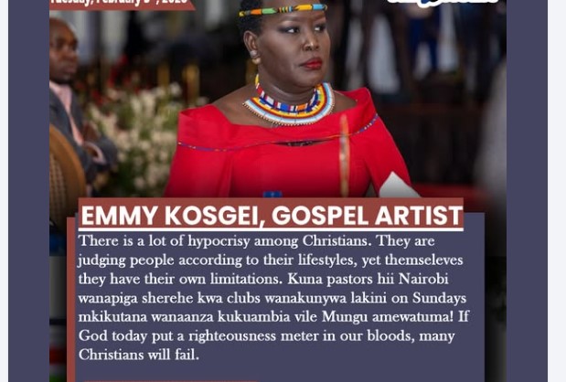 Gospel musician Emmy Kosgei exposes-There is a lot of hypocrisy among Christians. They are judging people according to their lifestyles, yet themseleves they have their own limitations. Kuna pastors hii Nairobi wanapiga sherehe kwa clubs wanakunywa .