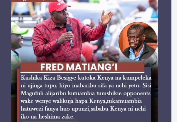 Former Interior Cabinet Secretary Fred Matiang’i has criticized President William Ruto over the handling of Ugandan opposition figure Kizza Besigye. Speaking during a public forum, Matiang’i reportedly described the alleged arrest and transfer of Besigye from Kenya as a move that could damage the country’s international reputation. In his remarks delivered in Kiswahili, he argued […]
