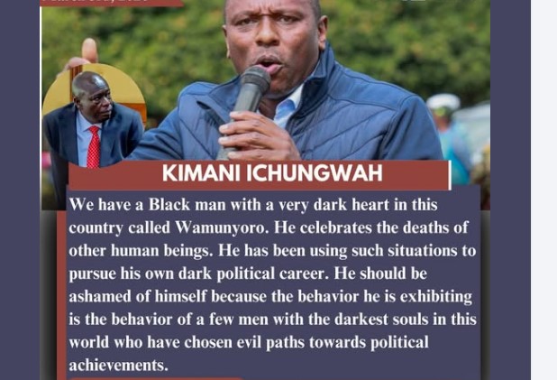 Remarks attributed to Kimani Ichungwah have sparked debate after he strongly criticized an individual referred to as “Wamunyoro,” accusing him of celebrating deaths and exploiting tragedy for political gain. The statement, which described the target in harsh and deeply emotional terms, reflects the increasingly confrontational tone that has come to characterize sections of Kenya’s political […]