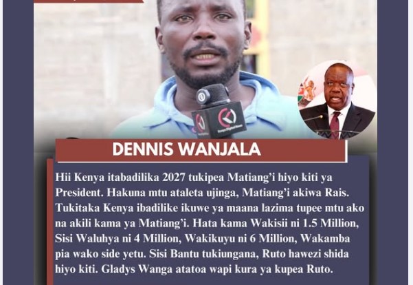 “Hii Kenya itabadilika 2027 tukipea Matiang’i hiyo kiti ya President. Hakuna mtu ataleta ujinga, Matiang’i akiwa Rais. Tukitaka Kenya ibadilike ikuwe ya maana lazima tupee mtu ako na akili kama ya Matiang’i. Hata”-Dennis Wanjala