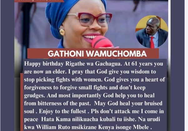 Githunguri MP Gathoni Wamuchomba has sparked fresh political debate after launching a sharp attack on former Deputy President Rigathi Gachagua during what was meant to be his special occasion. In a strongly worded statement, Wamuchomba told Gachagua to “stop picking fights with women,” accusing him of repeatedly engaging in confrontations with female leaders. Her remarks […]