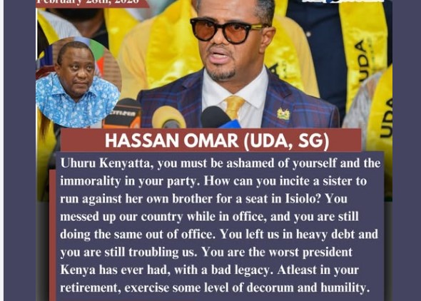 You messed up our country while in office, and you are still doing the same out of office~UDA SG Hassan Omar lectures Uhuru Kenyatta