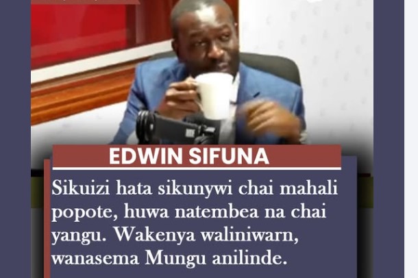 Sikuizi hata sikunywi chai mahali popote, huwa natembea na chai yangu. Wakenya waliniwarn, wanasema Mungu anilinde.-Edwin Sifuna