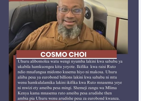 Cosmo Choi sparked debate online with a pointed statement regarding government accountability and public finances. Choi wrote: “Kama mnasema Ruto ameiba pesa arudishe then ambia pia Uhuru wenu arudishe pesa za Eurobond kwanza.” The comment references allegations of misappropriation or misuse of public funds, calling for both President William Ruto and former President Uhuru Kenyatta […]