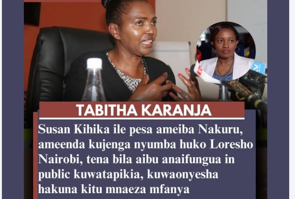 Tabitha Karanja-Susan Kihika ile pesa ameiba Nakuru, ameenda kujenga nyumba huko Loresho Nairobi, tena bila aibu anaifungua in public kuwatapikia, kuwaonyesha hakuna kitu mnaeza mfanya