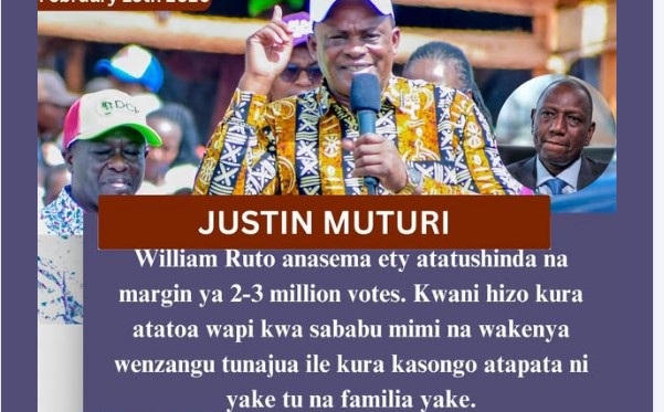 “William Ruto anasema ety atatushinda na margin ya 2-3 million votes. Kwani hizo kura atatoa wapi kwa sababu mimi na wakenya wenzangu tunajua ile kura kasongo atapata ni yake tu na familia yake.” J.B Muturi