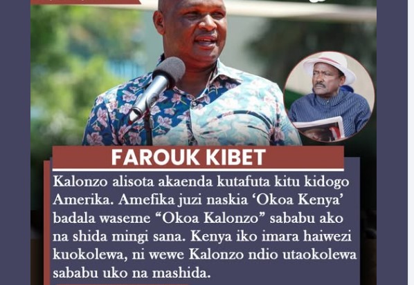 Farouk Kibet mocks Kalonzo-Kalonzo alisota akaenda kutafuta kitu kidogo Amerika. Amefika juzi naskia ‘Okoa Kenya’ badala waseme “Okoa Kalonzo” sababu ako na shida mingi sana. Kenya iko imara haiwezi kuokolewa, ni wewe Kalonzo ndio utaokolewa sababu uko na mashida.