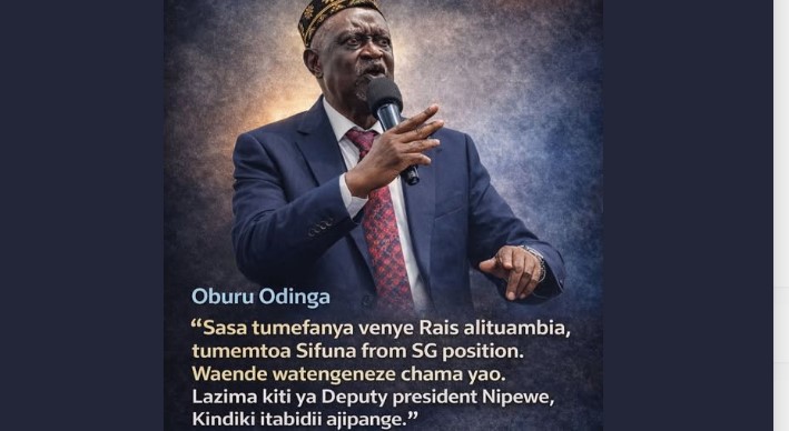 Siaya Senator Oburu Odinga has made a decisive statement regarding leadership changes within the Orange Democratic Movement (ODM). In his remarks, he confirmed that the party had removed Edwin Sifuna from the position of Secretary-General, signaling a shift in party dynamics and an opening for new leadership arrangements. Sasa tumefanya venye Rais alituambia, tumemtoa Sifuna […]