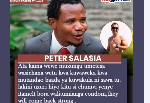 “Ata kama wewe muzungu umetesa wasichana wetu kwa kuwaweka kwa mutandao baada ya kuwakula ni sawa tu. lakini uzuri hiyo kitu si chumvi yenye itamelt bora walitumianga CD ,they will come back strong .”-Peter Salasia
