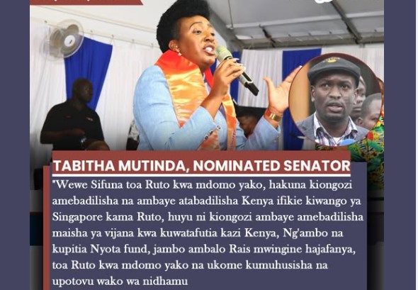 UDA Nominated Senator Tabitha Mutinda lectures Sifuna-Wewe Sifuna toa Ruto kwa mdomo yako, hakuna kiongozi amebadilisha na ambaye atabadilisha Kenya ifikie kiwango ya Singapore kama Ruto
