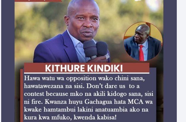 Kithure Kindiki mocks Opposition-Hawa watu wa opposition wako chini sana, hawatawezana na sisi. Don’t dare us to a contest because mko na akili kidogo sana, sisi ni fire.