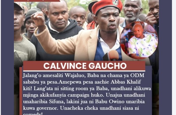Gaucho lectures and exposes Jalang’o-Jalang’o amesaliti Wajaluo, Baba na chama ya ODM sababu ya pesa.Amepewa pesa aachie Abbas Khalif kiti! Lang’ata ni sitting room ya Baba, unadhani alikuwa mjinga akikufanyia campaign huko.