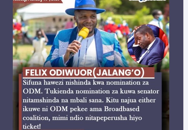 Jalang’o terrifies Sifuna saying-Sifuna hawezi nishinda kwa nomination za ODM. Tukienda nomination za kuwa senator nitamshinda na mbali sana.