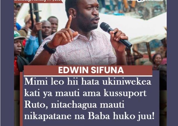 Unshaken Sifuna-Mimi leo hii hata ukiniwekea kati ya mauti ama kussuport Ruto, nitachagua mauti nikapatane na Baba huko juu!