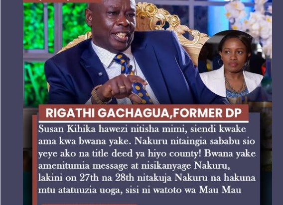 A fresh wave of political tension has emerged following strong remarks by former Deputy President Rigathi Gachagua directed at Nakuru Governor Susan Kihika and her husband. In a defiant statement, Gachagua dismissed claims that he could be intimidated or barred from visiting Nakuru County, asserting that no individual “holds the title deed” to the region. […]