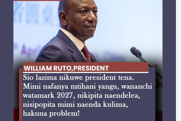 Sio lazima nikuwe president tena. Mimi nafanya mtihani yangu, wananchi watamark 2027, nikipita naendelea, nisipopita mimi naenda kulima, hakuna problem!-William rUTO