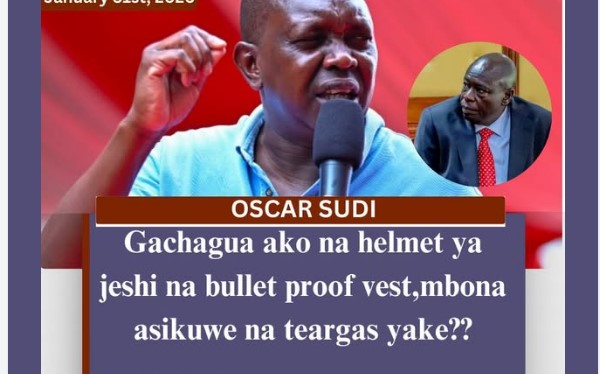 Kapseret MP Oscar Sudi has sparked debate after making remarks about former Deputy President Rigathi Gachagua’s security measures. Speaking during a public event, Sudi questioned why Gachagua would appear in protective gear such as a military-style helmet and bulletproof vest, yet not carry tear gas for personal protection. “Gachagua ako na helmet ya jeshi na […]