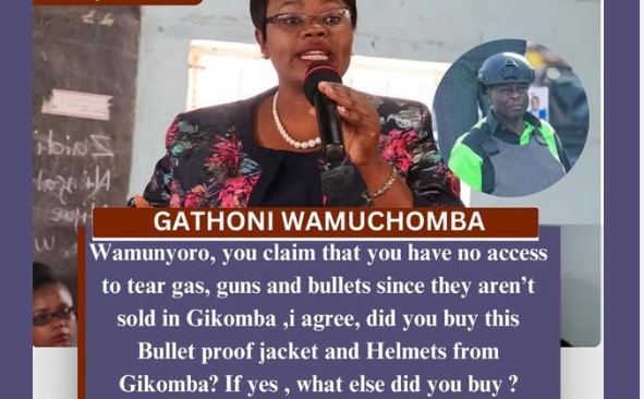 Githunguri MP Gathoni Wamuchomba has responded sharply to remarks made by former Deputy President Rigathi Gachagua during his Wamunyoro address, questioning the logic behind his claims regarding access to security equipment. Gachagua had argued that he could not possibly have access to items such as tear gas, guns, or bullets, stating that such equipment is […]