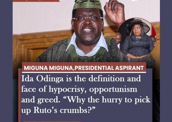 Controversial lawyer and political activist Miguna Miguna has launched a scathing attack on Ida Odinga following her acceptance of an appointment under President William Ruto’s administration. In a strongly worded statement, Miguna accused Ida Odinga of hypocrisy, opportunism, and greed, questioning her decision to take up a role in a government she and her family […]