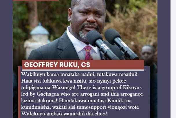 Cs Ruku warns Kikuyus-Wakikuyu kama mnataka uadui, tutakuwa maadui! Hata sisi tulikuwa kwa msitu, sio nyinyi pekee mlipigana na Wazungu!!