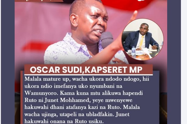 Oscar Sudi lectures Malala as he defends Junet-“Malala mature up, wacha ukora ndodo ndogo, hii ukora ndio imefanya uko nyumbani na Wamunyoro.”