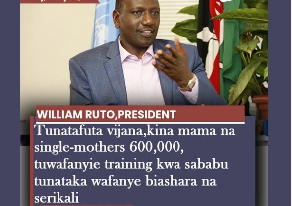 President Ruto-Tunatafuta vijana,kina mama na single-mothers 600,000, tuwafanyie training kwa sababu tunataka wafanye biashara na serikali