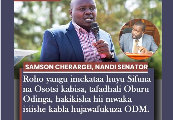 “Roho yangu imekataa huyu Sifuna na Osotsi kabisa, tafadhali Oburu Odinga, hakikisha hii mwaka isiishe kabla hujawafukuza ODM.”-Samson Cherargei