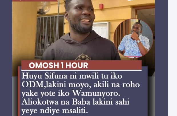 Omosh 1 hour attacks Sifuna-“Huyu Sifuna ni mwili tu iko ODM,lakini moyo, akili na roho yake yote iko Wamunyoro. Aliokotwa na Baba lakini sahi yeye ndiye msaliti.”