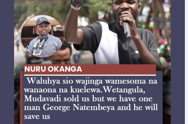 Nuru Okanga-“Waluhya sio wajinga wamesoma na wanaona na kuelewa.Wetangula, Mudavadi sold us but we have one man George Natembeya and he will save us”