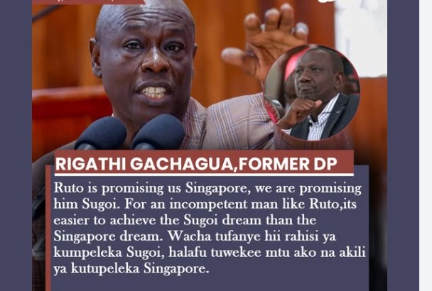 Gachagua; “Ruto is promising us Singapore, we are promising him Sugoi. For an incompetent man like Ruto,its easier to achieve the Sugoi dream than the Singapore dream”