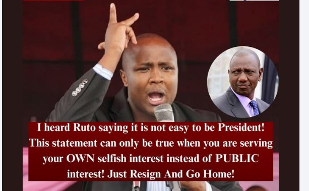 Alfred Keter hits back at Ruto-“I heard Ruto saying it is not easy to be President! This statement can only be true when you are serving your OWN selfish interest instead of PUBLIC interest! Just Resign And Go Home!”