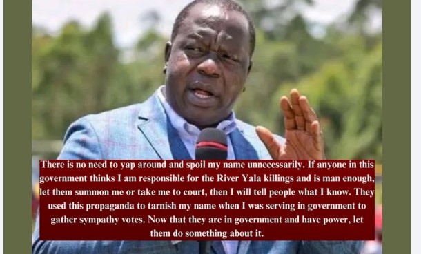 Former Interior Cabinet Secretary Dr. Fred Matiang’i has issued a bold challenge to the current administration, accusing government officials of tarnishing his name with unfounded allegations linking him to the infamous River Yala killings. In a fiery statement, Matiang’i said there is no need for government leaders to “yap around” and drag his name into […]
