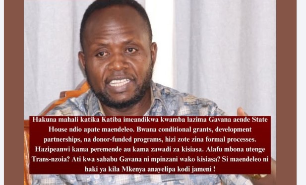 Trans Nzoia Governor George Natembeya has defended his decision to skip the recent meeting between governors and President William Ruto at State House, insisting that attendance is not a constitutional requirement for counties to receive development. “Hakuna mahali katika Katiba imeandikwa kwamba lazima gavana aende State House ndio apate maendeleo,” Natembeya said, dismissing claims that […]