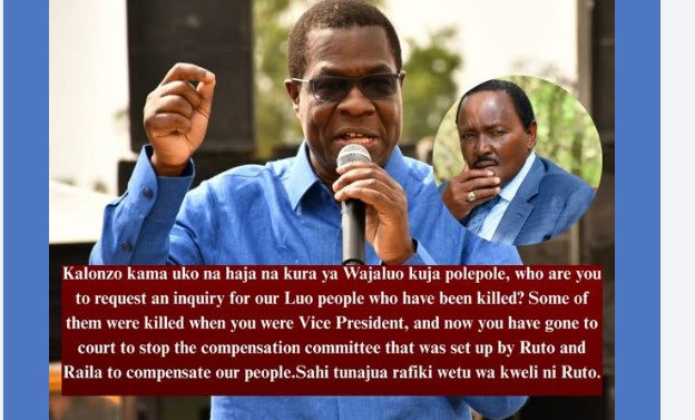 Ruto’s Cabinet Secretary Opiyo Wandayi has launched a sharp critique of politician Stevo for questioning the establishment of a compensation committee for the Luo community. Speaking publicly, Wandayi said, “Kalonzo kama uko na haja na kura ya Wajaluo kuja polepole, who are you to request an inquiry for our Luo people who have been killed? […]
