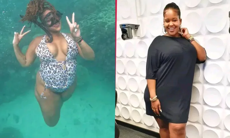 Media personality Kamene Kamene Goro has sparked pregnancy rumours on social media. If the photo she shared is anything to go by, then her husband,DJ Bonez will be a father soon.The former Kiss FM show host shared a beautiful a photo while standing in a pool of water.